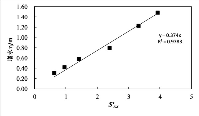 图3.1.2 筑堤珊瑚礁坪增水与深水辐射应力和波能流之间的关系