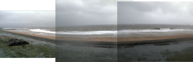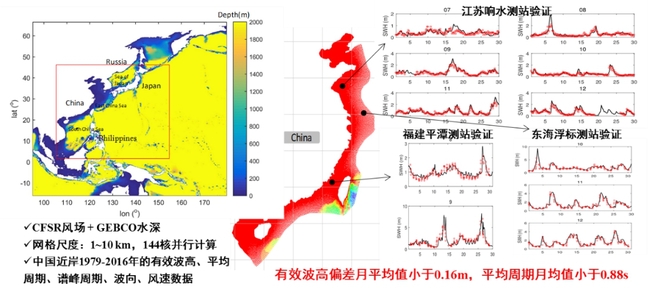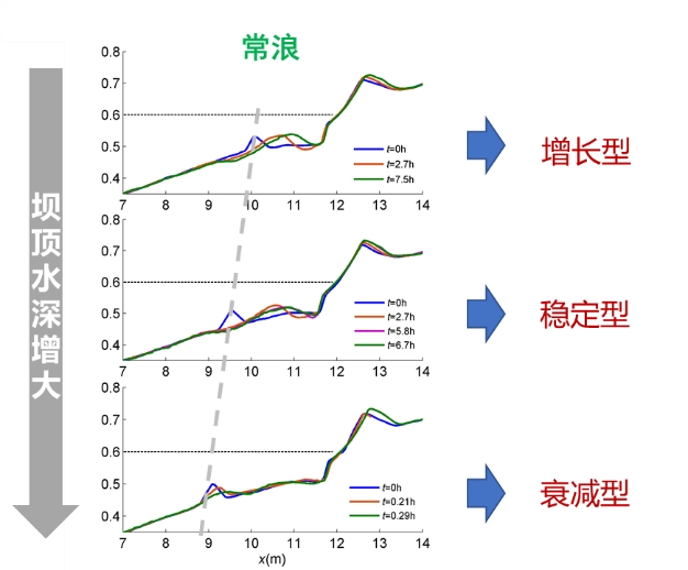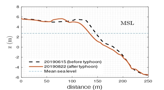 图3.4.2 海岸带岸基数字影像监测系统 图3.4.3 中国近海高精度波浪数据库 揭示了波浪冲越输沙及其与后滩的相互作用是反射型人工沙滩地貌调整再造的重要影响机制,发现常浪条件下三类不同的沙坝向岸形态演变模式和风暴条件下滩肩侵蚀滞后响应的原因。 图3.4.4 人工沙滩初期演变观测结果