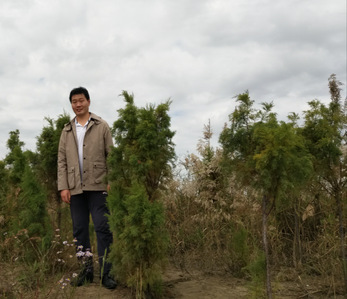 图3.4.7 微生物基覆盖材料促进柽柳生长(左图为移植阶段,右图为8个月后) |